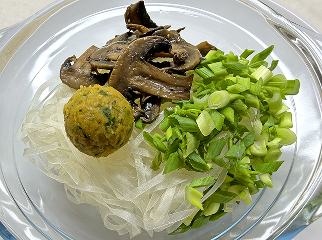 Самый быстрый и, теперь уже, полезный суп — это быстрорастворимая азиатская лапша. Из упаковки достать только лапшу, химические пакетики больше не нужны, их можно выбросить. Если есть жареные грибы, зеленый лук или другие любимые компоненты — можно тоже использовать. Залить кипятком, положить домашний бульонный кубик (или два), и дать настояться.