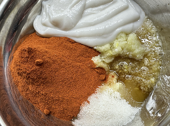 В пасту-маринад добавить зеленый лук, нарезанный на части 4-5 см.