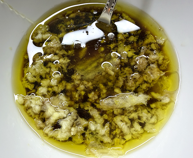 Для заправки: смешать 4-5 ст л оливкового масла, сок половины лимона, 2 ч л меда, 2 ч л соевого соуса, 2 раздавленных зубчика чеснока. Все хорошо перемешать.