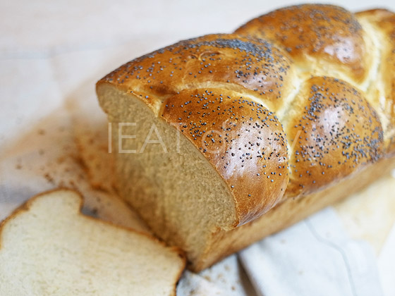 Разделить тесто на 3 равные части, сформировать колбаски, заплести их в косу. Положить косу в смазанную маслом форму, обмазать сверху яйцом и посыпать маком. Оставить на расстойку еще на 1 час.