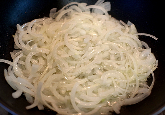 Лук нарезать полукольцами и обжарить до уверенного золотого цвета в растительном масле, (аккуратнее, не пережарьте, иначе будет горчить!)