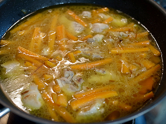 Залить зирвак горячей водой и поставить тушиться под крышкой на медленный огонь.