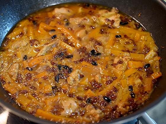 Спустя полчаса зирвак готов. Сахар из моркови карамелизовал заправку для плова, она стала тягучей, густой и невероятно ароматной.