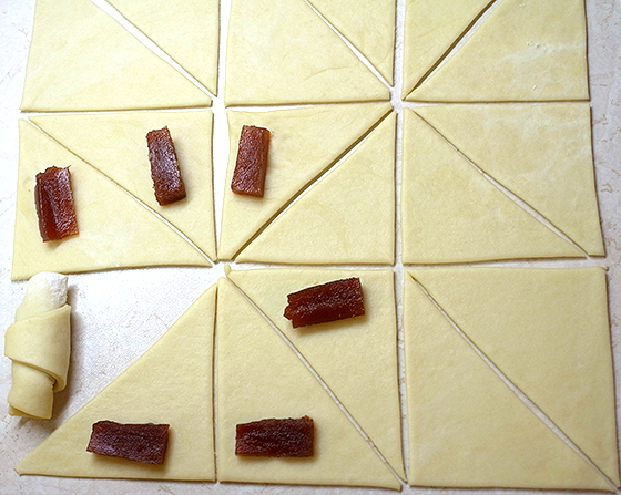 На каждый треугольник положить кусочек мармелада и свернуть рогалики.