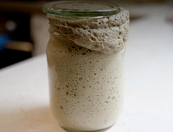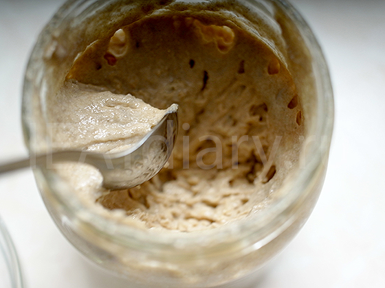 Свою закваску я храню в кухонном шкафу и кормлю два раза в сутки по 25 г воды и муки,  в 12 дня, и в 12 ночи. Пеку хлеб и делаю квас регулярно, поэтому убирать в холод у меня нет нужды.