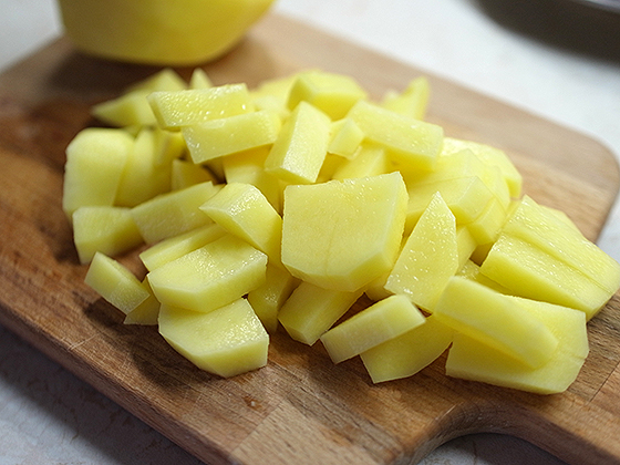 Две картофелины нарезать кубиками