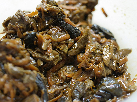 Разогреть растительное масло в сковороде и пассировать лук и морковь до золотистого цвета. Добавить грибы и тушить до готовности.