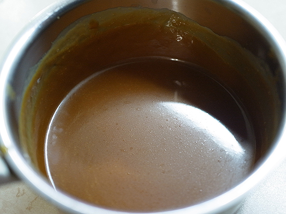 Сахар растворить в ковшике с толстыми стенками до янтарного цвета, стараясь не перегреть, чтобы карамель не горчила. Одновременно сливки довести до кипения, и аккуратно, в три приема, вливать сливки в сахар. Будет шипеть и брызгаться. Как только сливки будут добавлены, можно перемешать деревянной лопаткой. Если остались сгустки — чуть подогреть на маленьком огне.