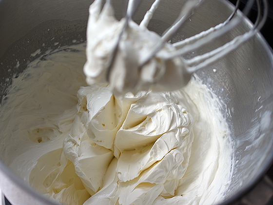 Когда остынет до комнатной температуры, взбить с маслом такой же температуры. Переложить в кондитерский мешок и отправить в холод.
