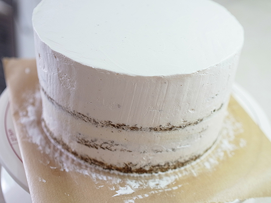 Чередовать начинку, пока не закончатся коржи. Обмазать оставшимся кремом, выравнивая торт.