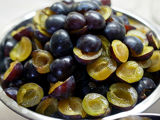Из слив удалить косточки.