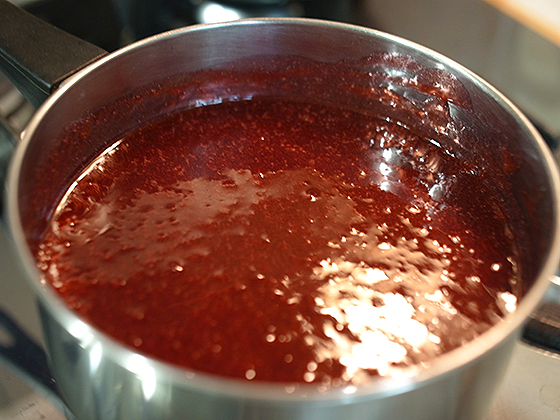 Небольшими порциям ввести сахар в пюре и варить до 106° и снять с огня. Влить лимонную кислоту, перемешать и быстро вылить пюре в форму.