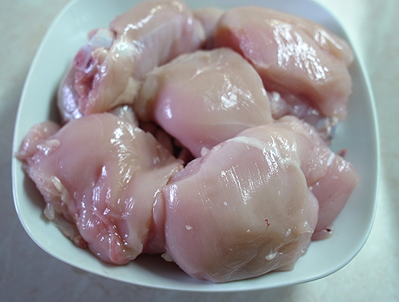Целую курицу разобрать на части, снять кожу (опционально, я снимаю), спинку — на бульон или в заморозку, она не понадобится.