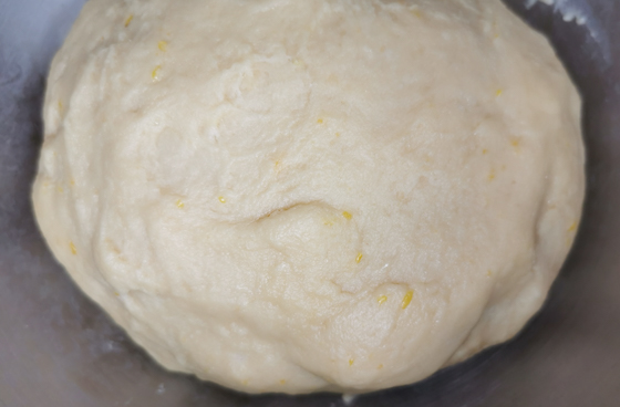 Добпвить масло, соль, муку и опару. Замесить тесто, накрыть пленкой и оставить на 1 ч 30 минут.