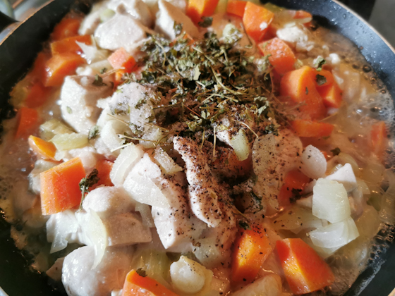 Перемешать и тушить на среднем огне под крышкой минут 15. Затем посолить, поперчить, добавить любимые травы и специи.
