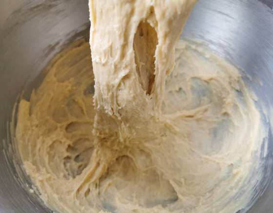 Смешать все сухие ингредиенты. Влить молоко, масла, яйцо и замесить тесто. Должно получиться легкое, липкое тесто, не перегруженное мукой.