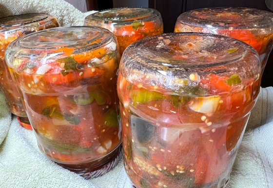 Вкус этой чудесной закуски насыщенный и богатый, как и место, откуда родом рецепт: Ставрополье — край с удивительной природой и самыми плодородными землями. Сейчас сезон изобилия вкусных овощей, которые хочется сохранить на холодные сезоны и наслаждаться летними заготовками, когда за окном идет снег.