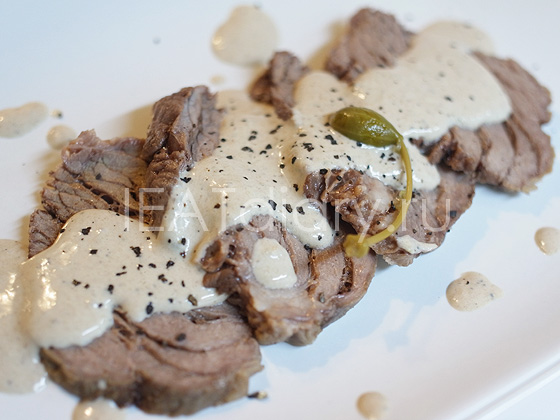 По случаю праздника - известное ресторанное блюдо, итальянская холодная закуска, изысканная и необычная, с потрясающе красивым названием Vitello tonnato, что в переводе означает "телятина под соусом из тунца". Думаю, хоть раз, но попробовать стОит. Не ожидала, что столь смелое сочетание продуктов окажется весьма приятным и совершенно не вызывающим вкусовое недоумение. Не зря блюдо пользуется большой популярностью в мире.