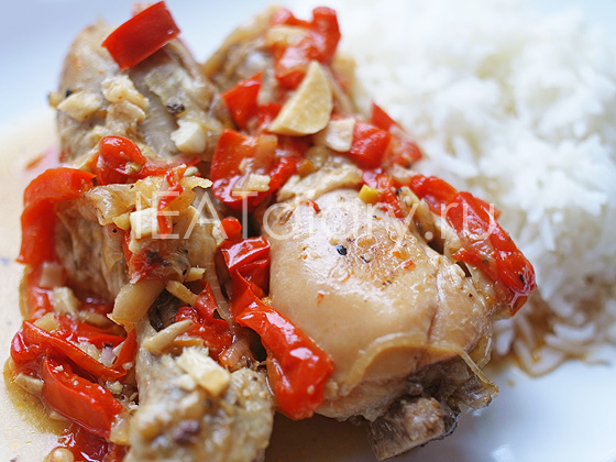 Сначала не собиралась выкладывать рецепт этого блюда, поскольку такого плана тушеную курицу уже делала не один раз. Но, попробовав, передумала: уж очень здорово получилось, такое удачное сочетание продуктов, что непременно советую всем попробовать.