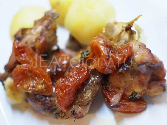 Заменитый петух в вине, очень вкусное национальное блюдо французкой кухни, которое имеет столько же вариантов приготовления, сколько провинций во Франции. По традиции, Coq au vin готовят именно из мужской особи семейства куриных, но, ясное дело, в наших широтах свободно купить можно только женскую, что, я думаю, не так принципиально для вкуса блюда.