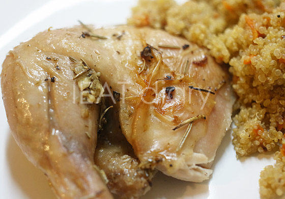 Сочная, ароматнейшая курица, приготовленная самым ленивым способом из разряда - "сунул в духовку и забыл". Особенно хочу отметить невероятно удачное сочетание дополнительных продуктов и специй. Одним словом - замечательно!