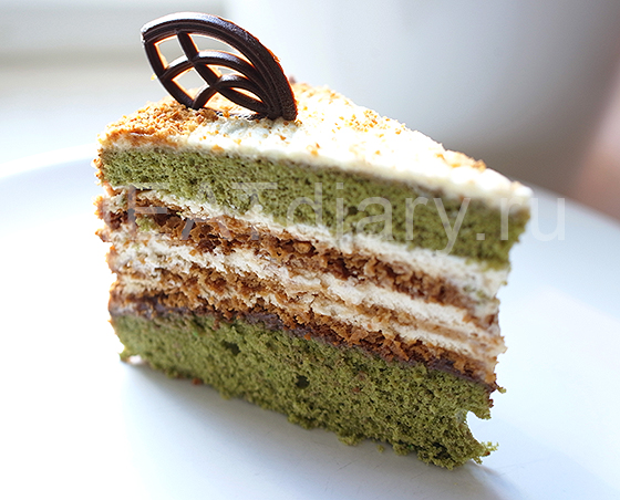 В этом торте гармонично соединились все вкусы роскошного чаепития: и мед, и шоколад, и сливки, и, собственно, вкус зеленого чая. В целом - необычайно вкусный и красивый торт для любого торжества.