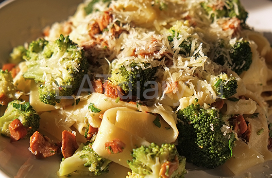 Идею блюда подсказала Ника, за что ей большое спасибо. Уж сколько у меня накопилось рецептов всевозможных соусов для паст, но такого варианта еще не было. Причем, это, пожалуй, самый быстрый вариант, и конечно, очень вкусный.