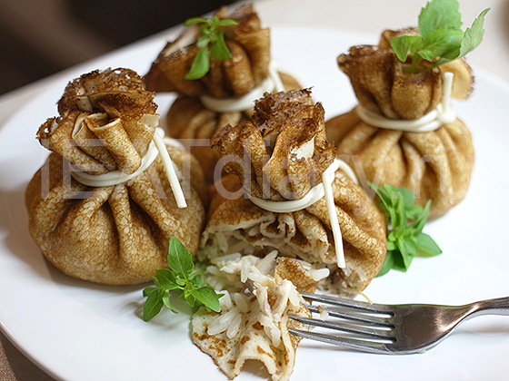 Оригинальная подача блинов делает это блюдо не только вкуснее, но и праздничнее. Рекомендую для новогоднего стола в качестве горячей закуски.