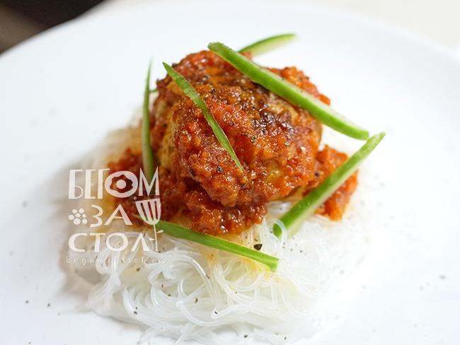 Сочные диетические тефтели и много ароматного соуса. Потихоньку начинаю мечтать о лете, овощных рынках, вкуснейших блюдах на основе томатов и тонкой талии ;)