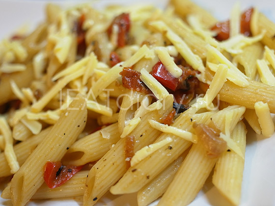 Вот один из примеров использования вяленых томатов: банальные спагетти, которые я просто обожаю. Очень вкусно!
