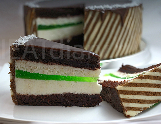 В этом торте гармонично соединились все вкусы роскошного чаепития: и мед, и шоколад, и сливки, и, собственно, вкус зеленого чая. В целом - необычайно вкусный и красивый торт для любого торжества.