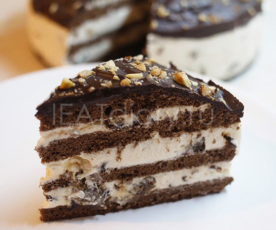 На создание этого торта меня вдохновил похожий одноименный торт одной известной кондитерской компании. Мне очень нравится сочетание сливочного суфле и чернослива, необычно и безупречно вкусно. Нравится и то, что торт не приторно сладкий, скорее десерт. В моем варианте - еще добавлен уверенный вкус шоколада, который отлично сюда вписался.